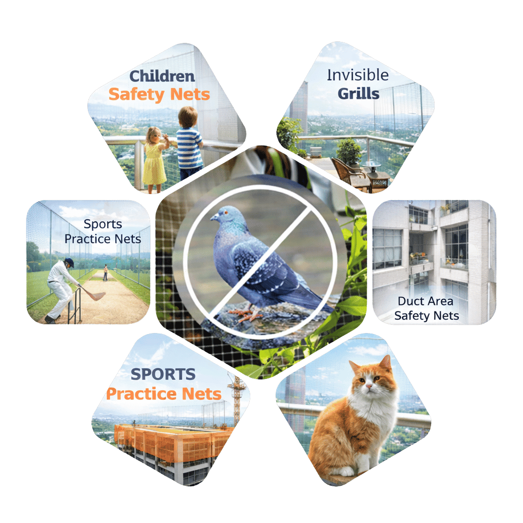 Devansh Enterprise is a reliable and professional safety nets provider offering complete safety solutions for residential and commercial properties. With expert experience in installing strong and durable nets, we ensure safety, cleanliness and peace of mind.